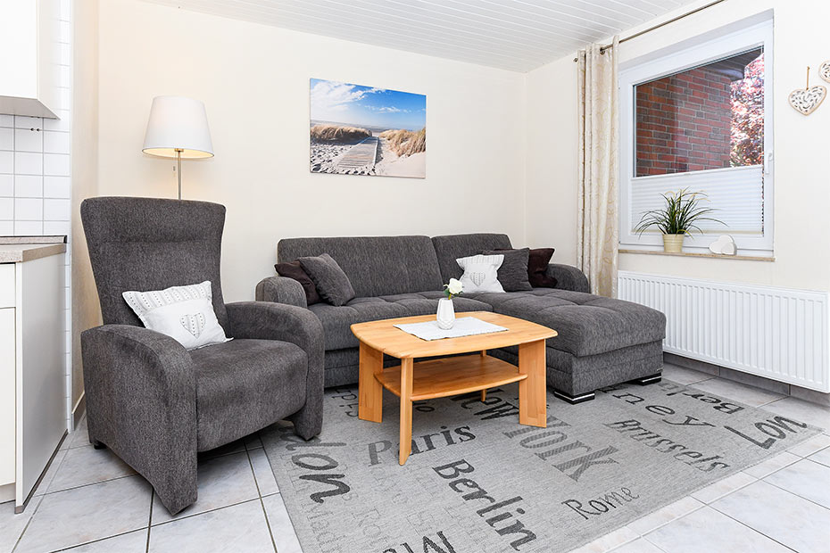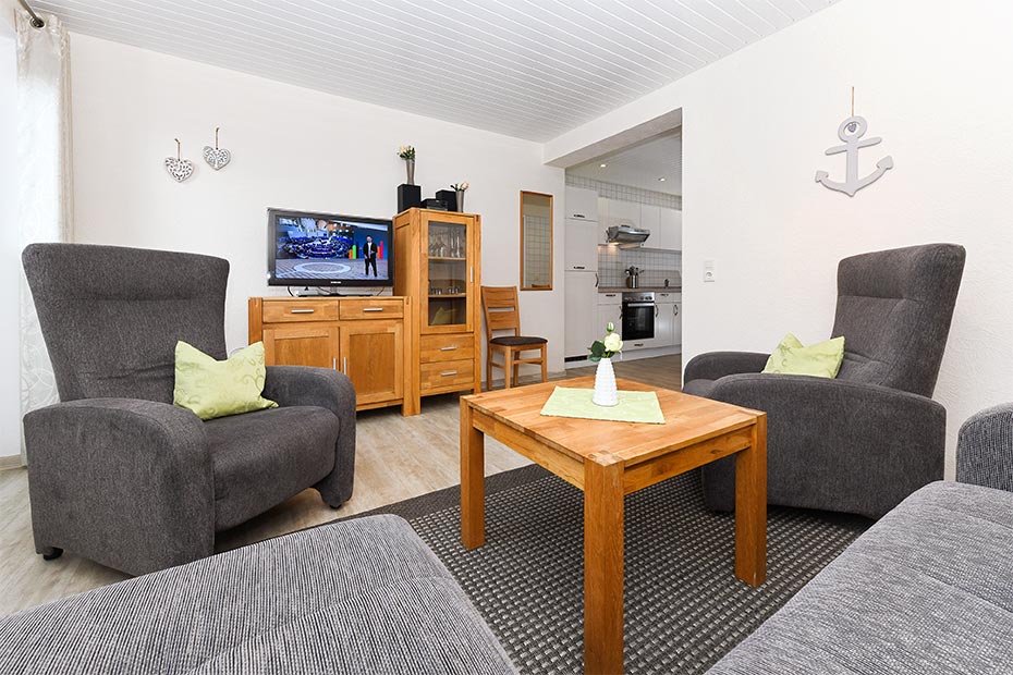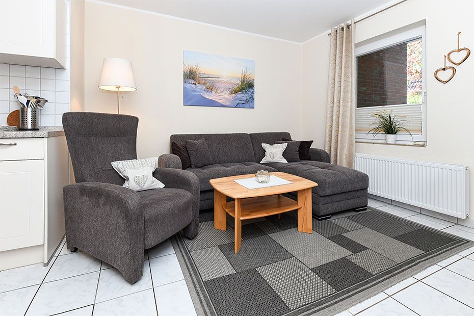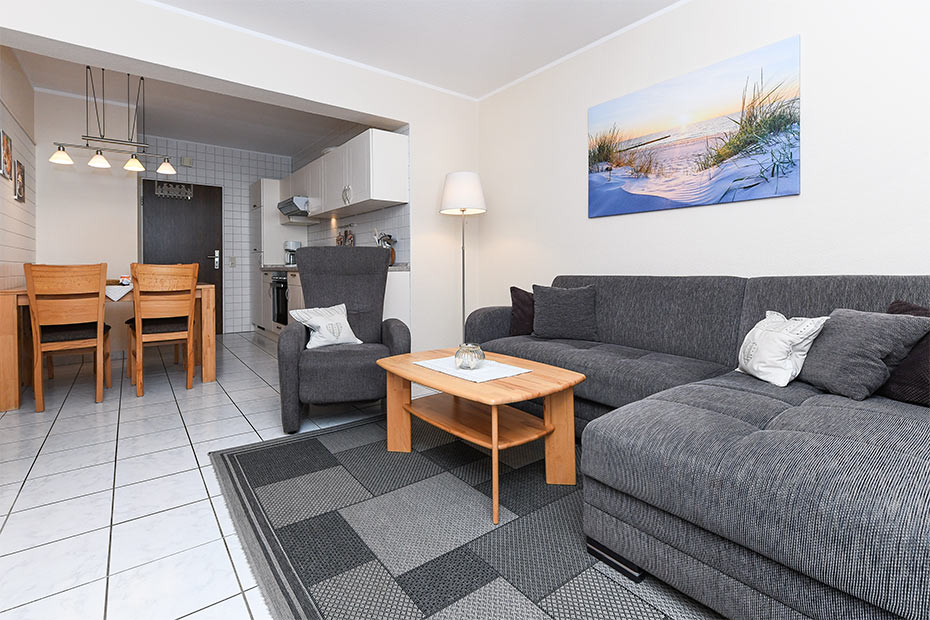 - Wohnraum mit separatem Küchenteil bei offener Raumgestaltung